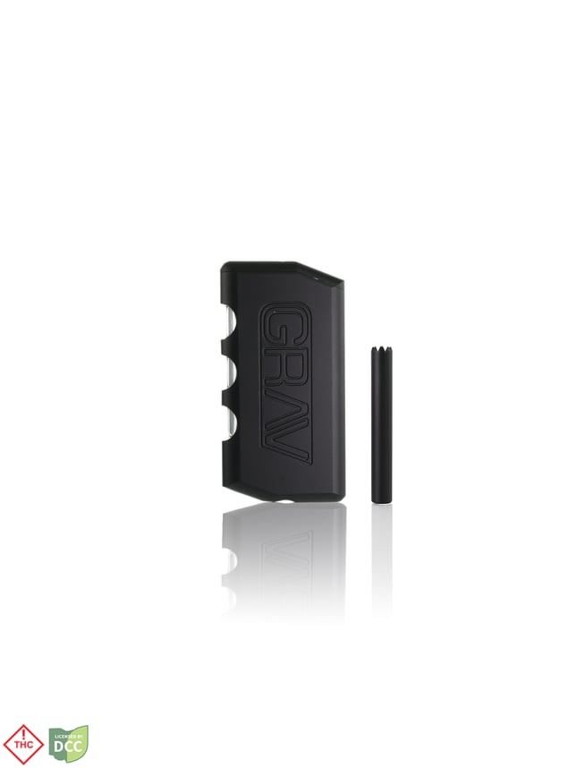The GRAV® Dugout is the epitome of convenience. You have your pipe, grinder, and storage all in one handheld, pocket sized device. Twist the lid to access the two chambers: the smaller contains a spring-loaded aluminum taster with teeth that make grinding and loading the bowl effortless, and the larger is a storage area for your flower, complete with polycarbonate windows for a quick supply check. The bottom of the Dugout has a recessed pin you can use to clear and clean your bowl after smoking. The piece is made on CNC aluminum with an engraved GRAV logo and comes with a zip-up carrying case, complete with a clip you can attach to a lanyard or keychain.